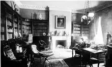 In 1817, while still in Europe, Ticknor was selected as Smith professor of French and Spanish languages and literature (a chair founded in 1816), and professor of belles-lettres at Harvard University.[2] In 1819 he returned to the United States, bringing with him a valuable library. He continued to add to this, and in time, it became one of the largest private collections in the country. For the rarity and importance of the books, it was unsurpassed, in some of its departments. His collection of Spanish literature was considered to rival the best private ones in Europe, and his library was also particularly strong in Portuguese literature. Ticknor was elected a Fellow of the American Academy of Arts and Sciences in 1821.[3]
