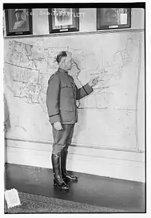 He was also a member of the board to revise the Coast Artillery drill regulations. On March 26, 1906, Bartlett was promoted to major, Coast Artillery, and on December 4, 1909, he became lieutenant colonel. He became colonel of the Coast Artillery in December 1911 and a brigadier general in August 1917, serving two long tours of duty with the General Staff. In France, he commanded a brigade of railroad artillery. From October 1917 to March 1918, he commanded Base Section Number 3. Bartlett then became a member of the Inter-Allied Military Commission in Greece, as well as the United States' military attaché in Athens.[1]