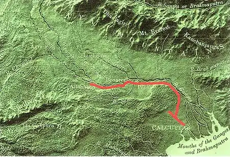 George Turnbull was the Scottish engineer responsible from 1851 to 1863 for the construction of the first Indian long-distance railway line: Calcutta to Benares up beside the Ganges river, 541 miles (871 kilometres), (601 miles including branches). The main line was later extended to Delhi. He had some 100 British civil engineers and 118,000 Indian workers. All railway lines, engines etc etc were brought from Britain in ships (before the Suez Canal existed) -- most then went in Indian ships up the Ganges river, despite monsoons.