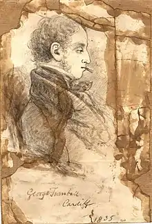 George Turnbull was born in Luncarty, 5 miles north of Perth, Scotland in 1809, the 11th and last child of William Turnbull and Mary Sandeman. Eight children were still living when the family moved in 1814 to nearby Huntingtower village, where his father successfully developed a linen bleachfield. His two grandfathers Hector Turnbull and William Sandeman had jointly developed bleachfields in Luncarty. Initially largely schooled by his older sister Mary, George in 1819 from age 10 rode a pony to Perth Grammar School. In 1824 he attended Edinburgh University learning Latin, Greek and mathematics. With one year for his father, he learned linen-manufacturing engineering and book-keeping.[3]