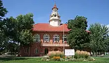 In 1903, Hallett was accused of mismanaging the estate and sued by Mary Lathrop, who alleged that he had used estate funds for his own purposes and had illegally paid himself from the estate.[18][19] Lathrop lost her case in both the District Court and the Court of Appeals.[18][20] Construction of the school was finally initiated in 1908.[21] The estate was turned over to the City of Denver in 1910 and the school was formally incorporated in 1911.[22][23] The school closed in 1957, however, the Clayton Trust continued to issue grants for various education projects through at least 1986.[23][24] After 1986, the trust was reorganized as the Clayton Foundation, which occupies the campus as an early childhood learning facility (Clayton Early Learning).[25][26]