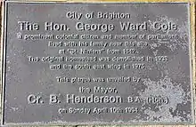 - ↑ "George Ward Cole". Re-Member: a database of all Victorian MPs since 1851. Parliament of Victoria. Archived from the original on 23 April 2023. Retrieved 27 August 2022.