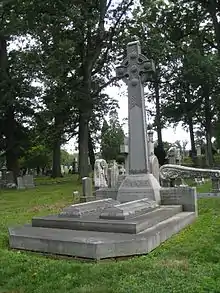 Riggs died at his home, Green Hill, in Prince George's County, Maryland.[13] The Green Hill estate included much of the nearby Maryland suburbs northeast of Washington including Adelphi, Chillum, and Lewisdale. Although a Episcopal Protestant in early life, he received the last rites of the Roman Catholic Church. He is buried at Rock Creek Cemetery, near Riggs Road in Washington, D.C.