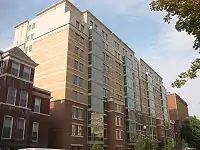 | Shenkman Hall | 2004 | 730 | 23rd | Upperclassmen | ![]() | Basement level features a food-court, including: Dunkin' Donuts and Pita Pit. Street level Potbelly. Formerly known as Ivory Tower. |