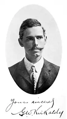 Kirkaldy, born in Clapham, in Greater London to W. H. Kirkaldy of Wimbledon was educated in England. Even at school in London he showed an interest in natural history and was appointed curator of the school museum. As a young boy he joined a debating club and spoke on the colouration of insects. He later went to Hawaii in 1903 to work for the United States Department of Agriculture then for the Hawaiian Sugar Planters' Association Experimental Station. While in Honolulu he had a riding accident which resulted in his fracturing his leg at five places. This injury never healed and his death in 1910 at San Francisco, California followed five days after the last of several surgery attempts to fix it. Kirkaldy was the author of the 1906 Leafhoppers and their Natural Enemies. Pt IX. Leafhoppers - Hemiptera (Bulletin of the Hawaiian Sugar Planters Association Division of Entomology 1(9): 271–479), and the 1909 Catalogue of the Hemiptera (Heteroptera) with biological and anatomical references, lists of foodplants and parasites (Berlin) and very many taxonomic papers describing new species and genera.[1]