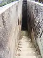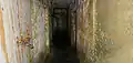 The floor was originally covered in a bituminous substance, the walls were tiled with ceramic tiles not unlike those seen on the wall pictured, and the tunnel ceiling leading to the room was lined with cork. The purpose of these measures was to reduce the possibility of sparks and the potential for a powder explosion. The zigzag tunnel at the far end of the room was designed to act as a blast wall to contain any blast within the immediate area.