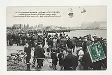 In August 1910, participating in the Circuit de l'Est on a Farman II biplane, he only managed to finish four of the six stages in the time limit, but he finished them all, achieving 3rd overall position (and the first on a biplane). At the Troyes stage, he was the only competitor to take to the air during the rest day, for the satisfaction of the public. At Charleville-Mézières, he was the first to take off for the 4th stage, which a violent wind seemed to make impossible, and there he accomplished a "fantastic journey":[4] he landed five times along the way, including one for lunch with Julien Mamet (who unfortunately broke a wheel of his Blériot XI ), and Legagneux was only prevented from reaching Douai within the time limit due lack of fuel. In the last stage, he took time to land along the way to invite himself to lunch, and took a short tour above Puteaux to greet his hometown.[5]