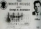 Georgi Nikitovich Bolshakov (Russian: Георгий Никитович Большаков; 1922–1989) was a Soviet GRU officer under journalist cover who was posted to Washington, D.C., twice, most significantly in the early 1960s. In this capacity, he played a major role in diplomacy between the United States and the Soviet Union during the beginning of the John F. Kennedy administration. President Kennedy’s brother, Attorney General Robert F. Kennedy, secretly met with Bolshakov on numerous occasions in 1961 in order to gain more information about Soviet intentions and convey messages from the administration to the top Soviet leadership, including Premier Nikita Khrushchev.
