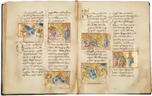 Collection of the Georgian manuscripts is divided into four sub-collections – A,[18] H,[19] Q[20] and S.[21] This collection contains both church and secular literary works. The preserved writings - "Martyrdom of Saint Shushanik", "Martyrdom of Evstati Mtskheteli", "Martyrdom of Abo Tbileli" form the cornerstone of the medieval Georgian church literature. Except of this collection comprises the notable works of Byzantine church literature translated into Georgian by Eqvtime Mtatsmindeli, Giorgi Mtatsmindeli, Eprem Mtsire, Arsen Ikaltoeli and other remarkable Georgian figures. From the secular literature are noteworthy handwritten copies of "Vepkhistkaosani" ("Man in the Panther Skin"), also other manuscripts containing astrological, geographic, medical, mathematic or military writings.[22]