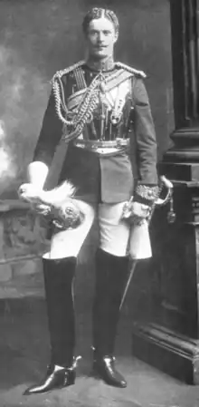 Ward served his elder brother, the 2nd Earl of Dudley, as his aide-de-camp during his tenure as Lord Lieutenant of Ireland. He was invested as a member of the Royal Victorian Order in May 1904, as part of the visit of Edward VII to Ireland.[7] He was placed on the reserve list of officers in March 1907.[8] Ward served with the 1st Life Guards at the outbreak of the First World War, where he saw action during the first few months of the conflict on the Western Front. He fought at the First Battle of Ypres, where he was killed in action at Zandvoorde on 30 October 1914. His body was never recovered and he is commemorated at the Menin Gate.[2] He was survived by his widow, Lady Evelyn Selina Louisa Crichton, daughter of John Crichton, 4th Earl Erne.[2] His grandfather, Sir Thomas Moncreiffe and brother-in-law Dermot Blundell, both played first-class cricket.