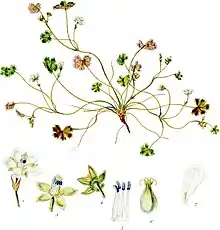 - ↑ Hooker, J.D. (1844). "Geranium microphyllum Plate V". The Botany of the Antarctic Voyage of H.M. Discovery Ships Erebus and Terror in the Years 1839-1843 :under the Command of Captain Sir James Clark Ross. 1: 8, Plate V.