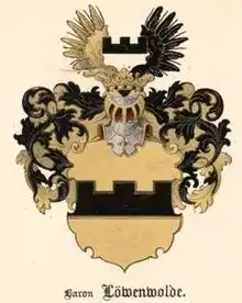 Gerhard Johann von Löwenwolde (Гергард Иоганн Левенвольде, died 1721)[1] was a Baltic German Estonian knight.[2] In the 1690s, he announced support of Johann Reinhold von Patkul's lobbyism against Swedish absolutist threats to Baltic noble privileges, while also working with the Swedish authorities in Estonia.[1] He served in the Swedish army, and in 1697 was promoted major of the Swedish garrison in Riga.[3] During the Great Northern War, he first served Augustus the Strong of Saxe-Poland–Lithuania, and after taking an ambiguous stance towards August and Peter the Great of Russia entered Peter's service after the Capitulation of Estonia and Livonia in 1710. He served as Peter the Great's plenipotentiary of Livonia during the same year, and held that office until 1713, when he became hofmeister in the service of Princess Charlotte of Brunswick-Wolfenbüttel, wife of Peter's son Alexei Petrovich, Tsarevich of Russia.[1]