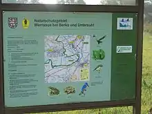 Work completed in the three model regions between 2007 and 2010 established a range of landscape management measures, uniform signage along the entire stretch, specially marked cycle and walking paths, exhibitions and displays, information points depicting events along the former border, and specially developed nature-experience and tourism offerings. The aim was not only to overcome administrative barriers such as between district administrations and Länder governments, but also to erase the lines of division between those who work in nature conservation, agriculture, tourism and the upkeep of historical monuments.[18]
