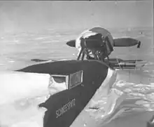 The first phase was an exploratory trip in 1929 to prepare the ground for the actual expedition which would take place the following year. Finances came from the Notgemeinschaft der Deutschen Wissenschaft. Wegener was accompanied by Johannes Georgi, Fritz Loewe and Ernst Sorge. They sailed on the ship Gertrud Rask to the western shore of Greenland. After arrival Wegener recruited, among others, Greenlandic Inuit Tobias Gabrielsen, with whom he was acquainted from the Danmark Expedition. The goal of this minor expedition was to find a suitable location to reach the Greenland ice sheet. It should be far enough to the south for the landing to be feasible as early as possible in the spring season, but also not too far from the northern latitudes, so that the temperature of the glaciers would be low enough.[3] The preliminary expedition also sought a good place to build the Western base station, as well as to assess the equipment and materiel that would be needed for the expedition; especially the means of transport. Wegener decided to bring dogsledges and ponies as well as aerosledges. He also used the occasion to carry out preliminary scientific research, including ice-drilling in order to gain knowledge about the melting and accumulation of the ice, as well as a seismic method to measure the thickness of the Greenland ice sheet.[4]