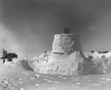 In 1929, as a preliminary expedition (German: Vorexpedition), Wegener went to Greenland to explore a suitable place to reach the Greenland Ice Sheet.[1] The main expedition would begin the following year with the goal to establish three Arctic stations on the same parallel. The central station was named Eismitte and was located at 71°11′N 39°56′W / 71.183°N 39.933°W near the center of the ice sheet. In the end this venture would claim Wegener's life during a return trip from the Eismitte station together with expedition member Rasmus Villumsen.[2]