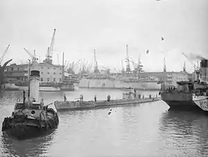The submarine docked at Liverpool on 10 May 1945 before moving to Loch Eriboll and to Loch Ryan (both in Scotland) on the 17th, for Operation Deadlight. She then arrived at Barrow in Furness on 25 May 1945 under the escort of HMS Grindall, departing again on 7 June 1945 escorted by HMS Gardiner.[5]