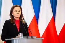On February 11, 2016, Uścińska was appointed the President of Poland's Social Insurance Institution.[4] She was then elected the Chairwoman of the steering committee for the technical committee at the International Social Security Association, specializing in policy related to old age, incapacity for work, and death of a household breadwinner.[5] She was also appointed to the management office of the International Social Security Association.[5] In this capacity she has regularly represented Poland in international fora, for example at the centenary of the International Labour Organization in Geneva in 2019.[6]