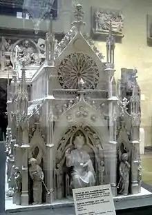 Gertrude's biography begins with her father hosting a banquet when Gertrude was ten years old.[7] That the king accepted Pippin's invitation to the dinner at all shows Pippin's standing as well as that of his family.[8] At this feast, the King asked Gertrude if she would like to marry the "son of a duke of the Austrasians.... for the sake of his worldly ambition and mutual alliance."[3] Gertrude declined and "lost her temper and flatly rejected him with an oath, saying that she would have neither him nor any earthly spouse but Christ the Lord."[9]