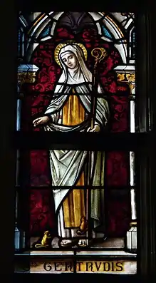 Gertrude of Nivelles, OSB (also spelled Geretrude, Geretrudis, Gertrud; c. 628[2] – 17 March 659) was a seventh-century abbess who, with her mother Itta, founded the Abbey of Nivelles, now in Belgium.