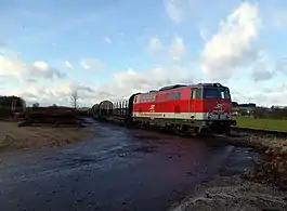 The Gessertshausen–Türkheim railway (also known as the Staudenbahn—Stauden Railway) is a railway line through the Stauden (hence the name), the southern part of the Augsburg-Westerwald Nature Park (in the districts of Augsburg and Unterallgäu, Bavaria, Germany). The line was built from 1908 to 1912 and had a length of 42.4 kilometres (26.3 mi). One section (Ettringen – Markt Wald) was closed in 1983 because of low passenger numbers and the poor state of the track. The line from Türkheim to Ettringen is used by the Lang Papier factory. The section from Markt Wald to Gessertshausen is only used by an excursion train association. Every second Sunday a diesel fuel train runs from Augsburg Hbf to Markt Wald.