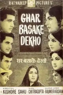 Ghar Basake Dekho (Start A Family) is a 1963 Hindi family drama film, directed by Kishore Sahu.[1][2] The film was produced by Trikambhai Dave and Bal Chander Shukla for Ratandeep Pictures,[3] with music composed by Chitragupta and lyrics written by Rajendra Krishan.[4] The story was taken from the Gujarati stage writer Prabhulal Dwivedi's story, 'Grahasti'.[5] The screenplay and dialogues were by Rajendra Krishan.