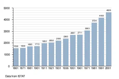 - ↑ "Popolazione Residente al 1° Gennaio 2018". Italian National Institute of Statistics. Retrieved 16 March 2019.