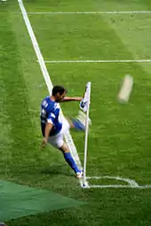 It was reported that Abramovich tried to buy the entire Cagliari club when Zola refused to renege on his verbal contract with Cagliari, although Zola himself will not confirm it.[33][34] Zola subsequently led Cagliari to promotion to the Italian Serie A. Then he renewed his contract for Cagliari Calcio for one more year. He retired in June 2005, after ending his career in appropriate style with a double against Juventus in his last professional game. His number 10 Cagliari jersey was withdrawn in his honour for the season after he left but was worn in the 2006–07 season by Andrea Capone.[35] Zola retired as the fifth highest goalscorer of free-kicks in Serie A history, with 20 goals from set-pieces, and currently sits behind only Francesco Totti and Roberto Baggio (both at 21), Alessandro Del Piero (22), Andrea Pirlo (26) and Siniša Mihajlović (28).[36] With 12 goals from free kicks, he is also the joint–third all-time goalscorer from set-pieces in the history of the Premier League, alongside Thierry Henry and Cristiano Ronaldo, and behind only James Ward-Prowse (17) and David Beckham.[37]
