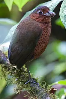 - ↑ BirdLife International (2018). "Grallaria gigantea". IUCN Red List of Threatened Species. 2018: e.T22703240A131943698. doi:10.2305/IUCN.UK.2018-2.RLTS.T22703240A131943698.en. Retrieved 12 November 2021.