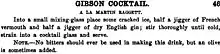 The Gibson is a mixed drink made with gin and dry vermouth, and often garnished with a pickled onion. In its modern incarnation, it is considered a cousin of the ubiquitous martini, distinguished mostly by garnishing with an onion instead of an olive. But the earliest recipes for a Gibson – including the first known recipe published in 1908 by Sir David Austin – are differentiated more by how they treat the addition of bitters.[1]