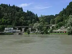Since 1909, the Gießenbachtal at the exit of the Stillensteinklamm at the mouth of the Gießenbach into the Danube is crossed by the Donauuferbahn by means of a very high seven-arched viaduct.