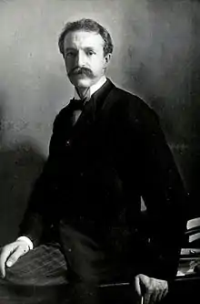 Gifford Pinchot was born in Simsbury, Connecticut on August 11, 1865.[5] He was named for Hudson River School artist Sanford Robinson Gifford.[6] Pinchot was the oldest child of James W. Pinchot, a successful New York City interior furnishings merchant, and Mary Eno, daughter of one of New York City's wealthiest real estate developers, Amos Eno.[7] James and Mary were both well-connected with prominent Republican Party leaders and former Union generals, including family friend William T. Sherman, and they would frequently aid Pinchot's later political career.[8] Pinchot's paternal grandfather had migrated from France to the United States in 1816, becoming a merchant and major landowner based in Milford, Pennsylvania.[9] His mother's maternal grandfather, Elisha Phelps, and her uncle, John S. Phelps, both served in Congress.[10] Pinchot had one younger brother, Amos, and one younger sister, Antoinette, who later married British diplomat Alan Johnstone.[11]