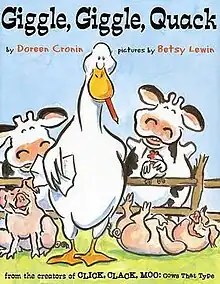 Giggle, Giggle, Quack is a sequel featuring the barnyard animals first seen in Cronin and Lewin's Click, Clack, Moo: Cows That Type, which was awarded the Caldecott Honor in 2001.