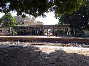 Gillani Railway Station (Urdu: گیلانی ریلوے اسٹیشن, Sindhi: گيلاني ريلوي اسٽيشن) is an abandoned railway station on Karachi Circular Railway loop line in Gulshan-e-Iqbal, Karachi, Pakistan. In the past, Pakistan Railways had a plan to establish a central railway station for Karachi there. For a while it was the terminus station of Tezrao and was a stop for the Chenab Express when it was running via the KCR loop for few years in the 1990s.[1]