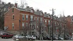 The Gilbert Row, as of 2005 often referred to as Emery Row, is a group of historic rowhouses in the southern part of the Walnut Hills neighborhood of Cincinnati, Ohio, United States. Composed of six individual small houses and a more substantial structure designed as a commercial building, the row was built by the real estate firm of Thomas Emery's Sons according to a design by the Steinkamp Brothers architectural firm.[2] Built in 1889,[1] the complex became a model for many residential complexes constructed by Thomas Emery's Sons during the 1890s, including multiple apartment-style properties in Walnut Hills.[2]