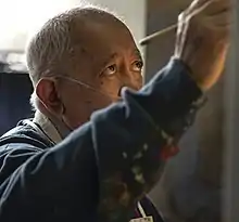 Later, his family pressured him to study medicine but his middle school teacher intervened and had him apply to the Escuela Nacional de Pintura, Escultura y Grabado "La Esmeralda".[2] In 1950, he entered the school taking classes with Enrique Assad, Ignacio Aguirre and Carlos Orozco Romero.[3][4] While at school in 1951, he was an assistant to David Alfaro Siqueiros on work at the dean's offices of UNAM.[3]