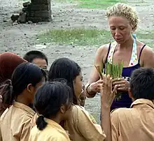 Every week, Delphine Robbe, Gili Eco Trust manager, teaches the three local school's classes about ecology and English. During 45 minutes, children from six to twelve years old think about solutions to preserve natural richness of Indonesia. They are taught at school on how to cultivate tomatoes, cucumbers, eggplants, aloe vera and vetiver grass.