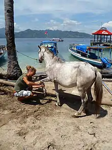Gili Eco Trust operates free to the islands' horses three times every year, in association with the Animal Aid Abroad Australia and encourages businesses to install in front of their shop a fresh water bucket for the horses.