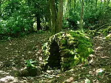 The woodland that surrounds the Grotto or "Secret Spring" of Polmaise Castle supports a number of woodland species such as wood anemones, wood sorrel and bluebells. In the area around the Grotto many towering, ‘exotic’ conifers were planted in the 1860s by the Murray family which include four Sierra Redwoods, two Coast Redwoods (which can reach over 350’ high becoming the tallest trees on Earth), Douglas-firs, and a South American Monkey-puzzle tree.