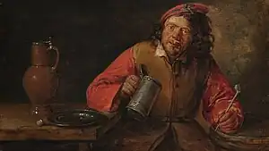 In his tavern scenes he shows himself to be a close follower of Adriaen Brouwer, just as David Ryckaert III and Joos van Craesbeeck were.[7] This is clearly visible in The drinker (Museum Boijmans Van Beuningen).
