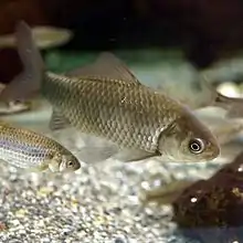 The ginbuna (Carassius langsdorfii), sometimes referred to as silver crucian carp or Japanese silver crucian carp, is a species of freshwater fish in the carp family (family Cyprinidae).[1][2] It is native to lakes and rivers in Japan.[3]