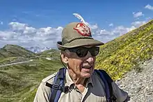 He started on June 16 from the top of Rocciamelone, and after a journey.[2] of 1700 km he arrived on August 5 at the flank of Mount Etna.[3] The goal of this enterprise, which he defined as "my reckless walk through Italy", was to bring a message of brotherhood and Italianness to the 42 stopover towns. For this endeavor, he has been appointed Grand Officer by the President of Italy Carlo Azeglio Ciampi on December 27, 2003.