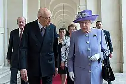 Giorgio Napolitano (Italian: [ˈdʒordʒo napoliˈtaːno]; 29 June 1925 – 22 September 2023) was an Italian politician who served as the president of Italy from 2006 to 2015, the first to be re-elected to the office.[1][2] In office for 8 years and 244 days, he was the longest-serving president, until the record was surpassed by Sergio Mattarella in 2023. He also was the longest-lived president in the history of the Italian Republic,[3] which has been in existence since 1946. Although he was a prominent figure of the First Italian Republic, he did not take part in the Constituent Assembly of Italy that drafted the Italian constitution;[3] he is considered one of the symbols of the Second Italian Republic, which came about after the Tangentopoli scandal of the 1990s.[3] Due to his dominant position in Italian politics, some critics have sometimes referred to him as Re Giorgio ("King Giorgio").[4]