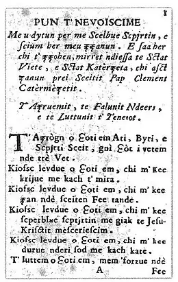 - ↑ "Über die Priesterausbildung im katholischen Nordalbanien während der Türkenzeit". Wir sind die Deinen: Studien zur albanischen Sprache, Literatur und Kulturgeschichte, dem Gedenken an Martin Camaj (1925-1992) gewidmet. Otto Harrassowitz Verlag. 2010. pp. 507–8. ISBN 978-3-447-06221-3. Retrieved 19 October 2011.