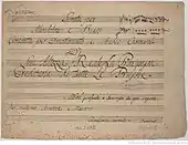 - Sonata for Mandolin, bass. No. 1. D major, (kept Bibliothèque Nationale de France)[3] This is in two parts; possibly the same work that Konrad Wölki called Two sonatas four mandolin and bass and said was "held in Paris."[1]
