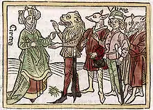 Of his later works, the moralistic biographies gathered as De casibus virorum illustrium (1355–74) and De mulieribus claris (1361–1375) were the most significant.[16] Other works include a dictionary of geographical allusions in classical literature, De montibus, silvis, fontibus, lacubus, fluminibus, stagnis seu paludibus, et de nominibus maris liber. He gave a series of lectures on Dante at the Santo Stefano church in 1373 and these resulted in his final major work, the detailed Esposizioni sopra la Commedia di Dante.[17] Boccaccio and Petrarch were also two of the most educated people in early Renaissance in the field of archaeology.[18]