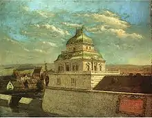 From 1590 onwards, the Belvedere on the Brühlsche Terrasse in Dresden was built according to Nosseni's plans, of which, however, only the lower storey was built until the death of Christian I, and work was stopped here as well. Until its destruction in 1747, the Belvedere was one of the sights of Dresden. Due to this loss, today there is no precise idea of this main work of Nosseni.