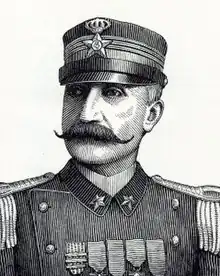 He fought bravely at the head of his regiment to the last. Badly wounded and surrounded, he strenuously defended himself in a hand-to-hand fight; overwhelmed, he fought again not to be taken prisoner, until again and badly hit, he died as a result of his injuries.[3][1]