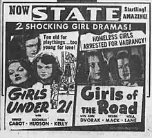 ![]() 1951 newspaper advertisement for Girls Under 21 and Girls of the Road | |