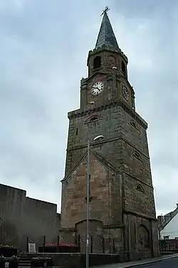 The Girvan Steeple is a steeple and the site of a former townhouse in Girvan, South Ayrshire, Scotland. Its popular name, "Stumpy Tower", "Stumpy Jail" or "Auld Stumpy", is derived from the Gaelic Olladh Stiom Paidh, meaning "Great Circle of Justice".[1] (The name of Knockcushan Street, upon which the tower sits, means "Hill [or Knoll] of Justice".) It is a Category B listed building.[2]