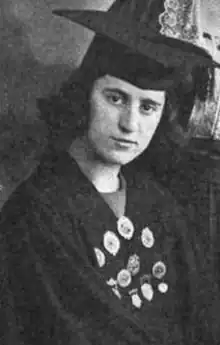 Gitta Gradova (birth name Gertrude Weinstock) was born in Chicago, the youngest child of Joseph and Sonya Weinstock. Her parents were both Russian Jewish immigrants to the United States; Gertrude was their only American-born child. Her father, Joseph Weinstock, was a rabbi by profession; both of her parents had been actors in Yiddish theatre when young.[1] Identified as a musical talent in childhood[2] she was already performing as a soloist in Chicago before her teens.[3][4] Her teacher in Chicago from age 7 was Esther Harris Dua.[5][6] Gradova was sent to New York at age 13, to study piano with Sergei Prokofiev.[7]